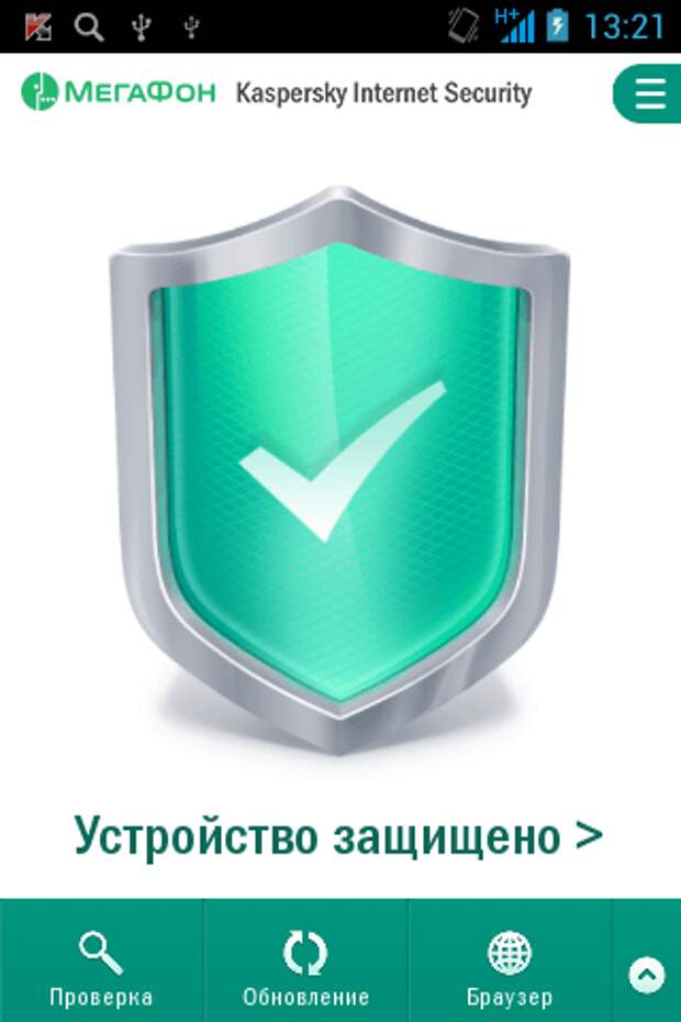 Приложение Kaspersky Internet Security для Android, созданное специалистами «Лаборатории Касперского» специально для абонентов «Мегафона», позволяет проверять устройство на наличие вредоносного кода в файлах, на картах памяти, в приложениях, загружаемых из Интернета, и SMS.